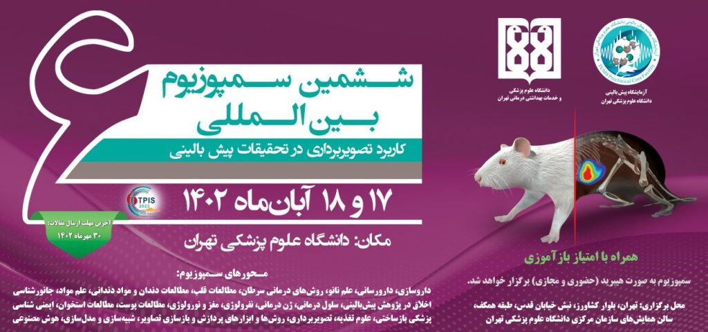 The sixth symposium on the Uses of Imaging in Pre-clinical Studies is held on November 8 and 9, 2023, by the Pre-clinical Laboratory of Tehran University of Medical Sciences. As